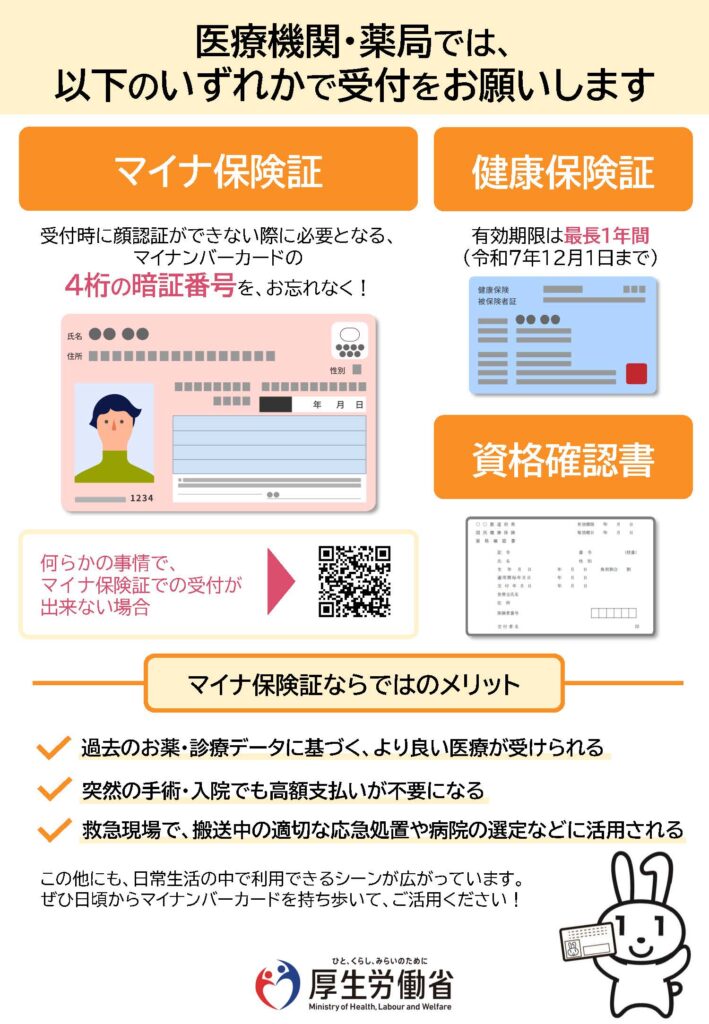 当院をご受診の際は、以下のいずれかをご持参ください。