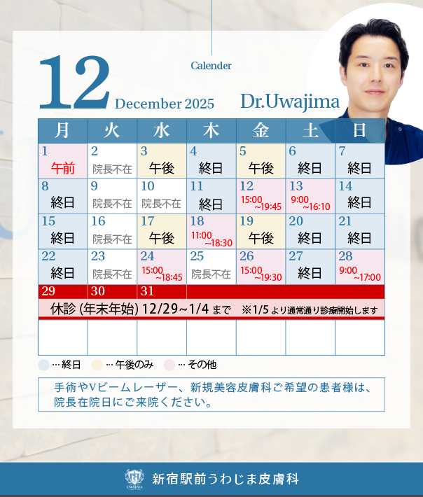 【院長カレンダー】12月院長出勤日のお知らせ