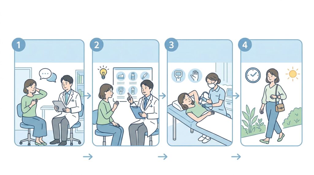 - 保険治療(外用・内服)と自費治療(ボトックス注射)など複数の選択肢がある。
